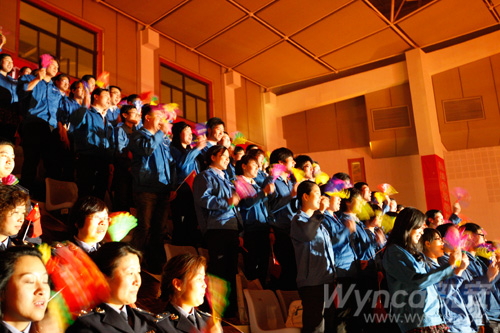 瀏覽量:4402 4月25日晚,由80名新安化工員工組成的合唱團,身穿新安藍工作服,在體育場內參加建德市萬名職工唱紅歌的活動,放聲高唱《東方紅》、《山丹丹花開紅艷艷》和《歌唱祖國》等紅色歌曲,以此來慶祝“五一”勞動節和即將到來的建黨90周年大慶。在活動中,公司員工何亮成為晚會主持人之一,與其他五名主持人一起為全市勞動模范和職工代表主持了一場精彩的文藝演出。