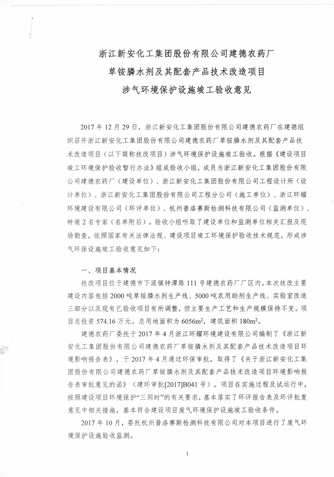 新安化工集團股份有限公司建德農藥廠草銨膦水劑及其配套產品技改項目進入驗收公示