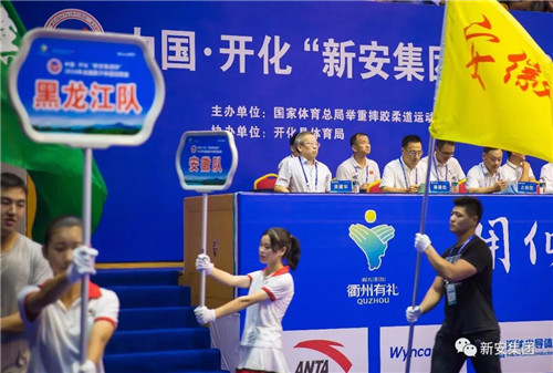 國家體育總局舉摔柔運動管理中心黨委書記畢東海,浙江省體育局局長鄭瑤,浙江體育職業技術學院院長、兩屆奧運冠軍占旭剛,衢州市委副書記、市長湯飛帆,市人大常委會副主任、開化縣委書記項瑞良等主要領導出席了開幕式。作為此次賽事的冠名單位,集團董事長吳建華(右一)特邀參加了開幕式。